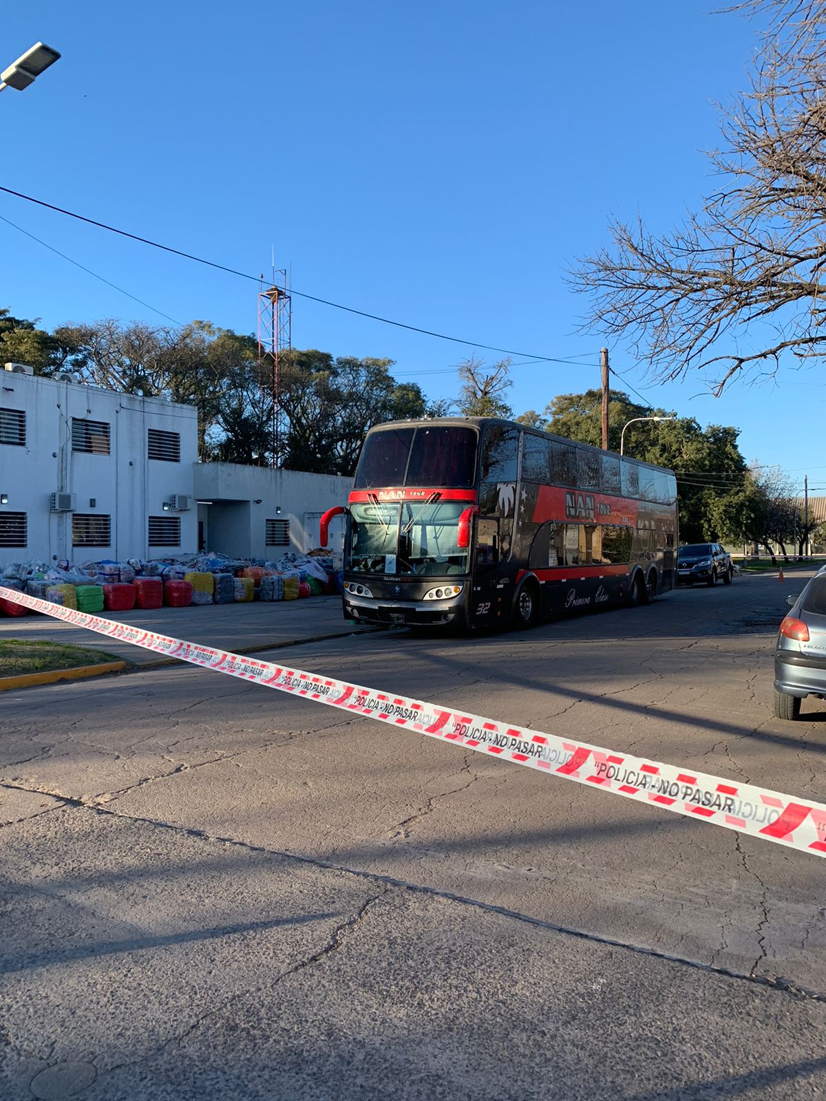 Al arribar al lugar, los efectivos constataron la presencia del colectivo y procedieron a su señalización preventiva. En su interior viajaban ocho pasajeros y dos choferes, junto a una gran cantidad de bultos que, según los ocupantes, contenían prendas de vestir y otros artículos textiles. La mercadería provenía del norte del país —presuntamente de Salta, Jujuy e incluso de países limítrofes como Bolivia y Paraguay— y tenía como destino la provincia de Buenos Aires.